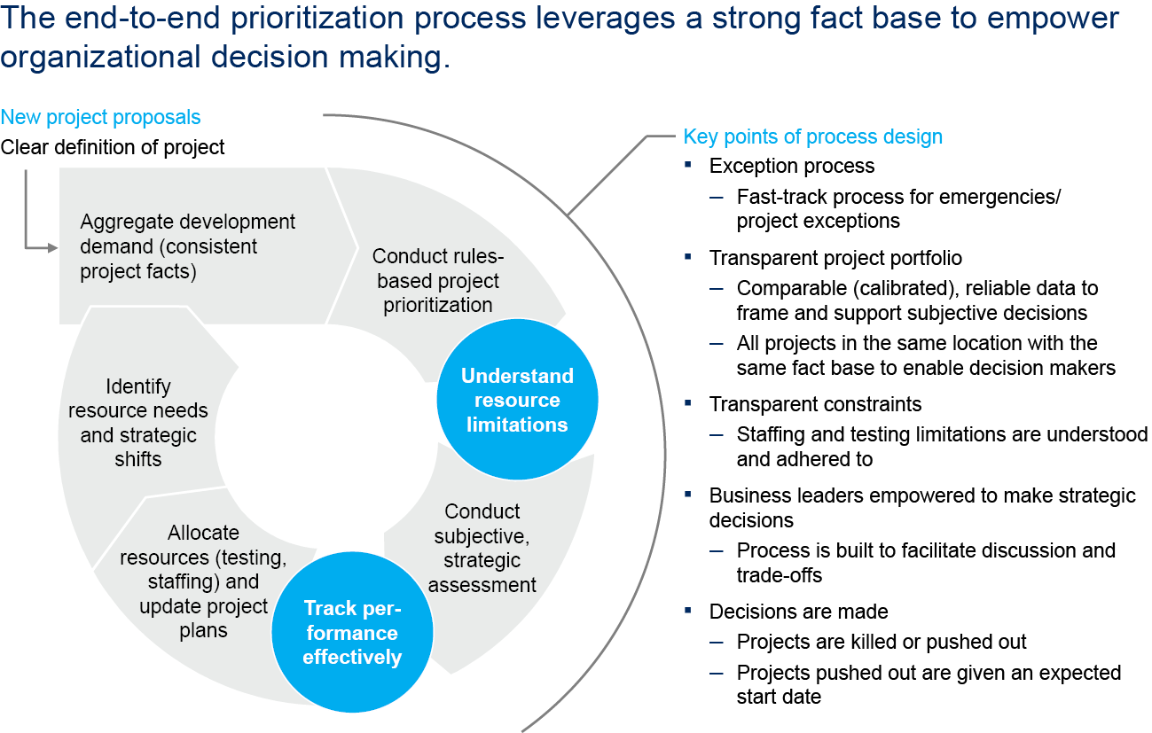 Traditionally, product development organizations have conducted portfolio management as an annual or semi-annual process in which they determine the optimal portfolio strategy and match their limited investment resources to the selected projects. Leading organizations are moving beyond this annual exercise to conduct a more regular, objective, rules-based prioritization of their projects, which they augment with a subjective assessment based on strategic goals. By mapping resources to their prioritized projects, these companies identify gaps relating to capacity and capabilities and can develop an action plan for improving resource allocation.