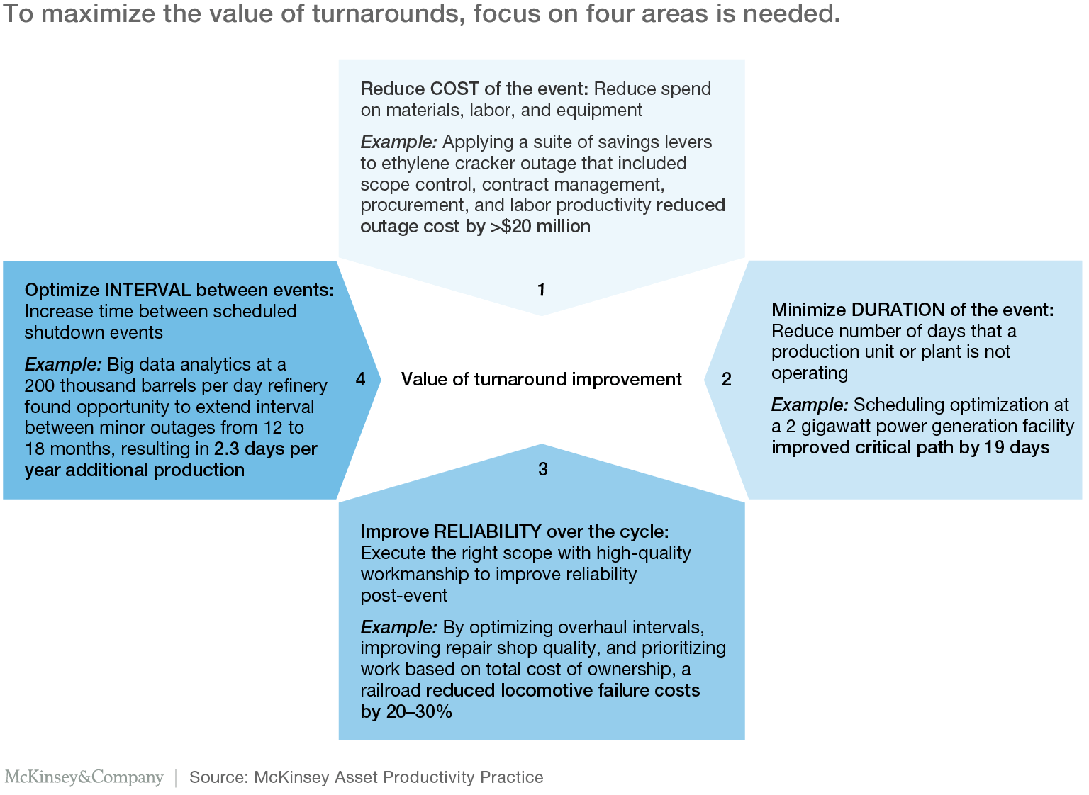 Better management of shutdowns and turnarounds can yield schedule and cost improvements of up to 30 percent.