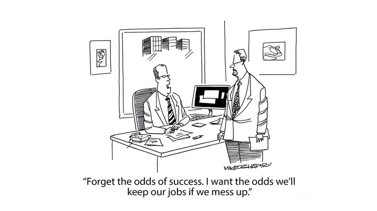 We treat uncertainty as an afterthought. The strategy room is a harsh place for most, and, quite frankly, failure on that stage is not an option for most managers. Execution problems? OK. A strategy that has gaps? We can fix that. But a strategy conversation about probabilities? You must be kidding! What you get instead is a slide about risk on page 149 of a 150-page deck, titled something like “Potential risk issues and how to mitigate them.” It’s there just so the presenter can say the issue is covered should the question about risk pop up.