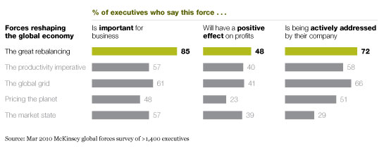 For all companies—both established multinationals and emerging-market challengers—this great rebalancing will force major adjustments in strategic focus. No longer can established companies treat emerging markets as a sideshow. Emerging markets will increasingly become the locus of growth in consumption, production, and—most of all—innovation. More and more, global leadership will depend on winning in the emerging markets first.