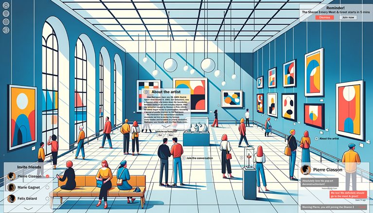 Executives at a preeminent museum, for instance, could better visualize opportunities to increase accessibility of museum exhibits when industrial designers edited and combined AI-generated images with supplementary visual content (sketches, graphics, and so on) to create storyboards that illustrated novel formats, products, services, and experiences (see image below).