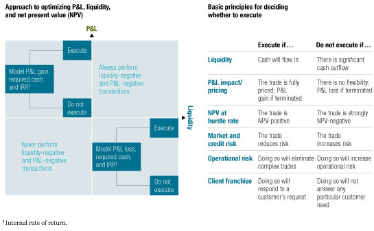 Defining the objectives is a good starting point but can be a challenge. In past efforts, the focus was largely on the P&L, NPV, and value creation. In today’s environment, liquidity, collateral, and gross risk reduction must also be considered for structured credit assets. Targets must be set, and the trade-offs must be clearly understood (Exhibit 5).