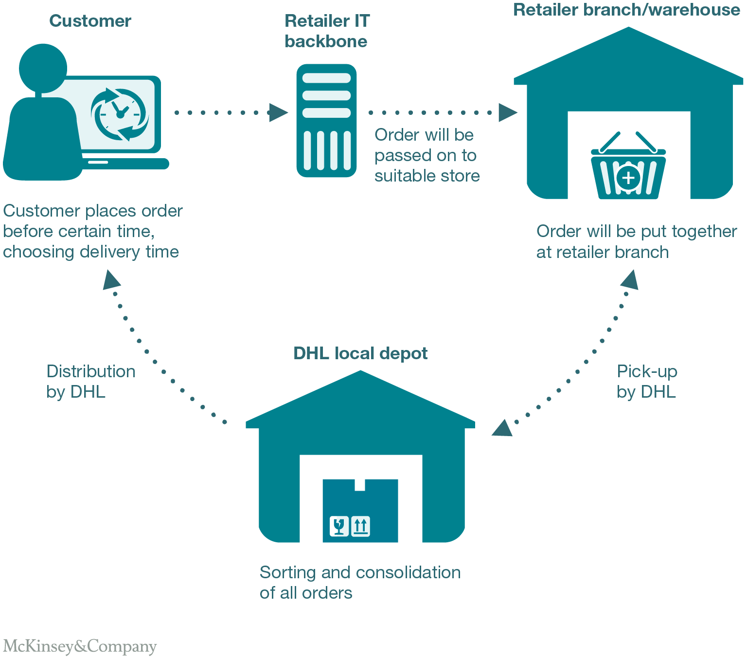 Retailers have a same-day delivery “sweet spot” with their existing local infrastructure, particularly shops and warehouses in or close to metropolitan areas. The proximity to the end customer enables them to provide customers with delivery on the day of the purchase, ideally combined with an option for a time window. Most retailers have already added an e-commerce channel to their traditional bricks-and-mortar sales approach. The combination with same-day delivery could help to win back some of the customers that have been lost to online shopping over the last decade.