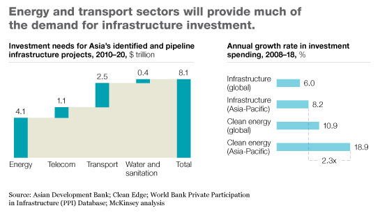 Despite all this, Asia remains an exciting place for infrastructure investment over the next ten years. India alone is set to spend $500 billion on projects from 2007 to 2011, thereby raising its infrastructure investment from 4 percent to 8 percent of GDP per annum. Domestic capital markets will finance some but not all of this demand: as in other parts of the region, global investors will have an opportunity to fill the gap.
