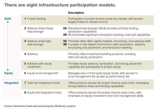 Despite the challenges and risks, Asia’s infrastructure growth over the next ten years is an attractive opportunity for global investors and financial institutions. There will be more than $1 trillion of infrastructure projects open to foreign investment, and further value can be captured by offering a full range of associated financial services besides lending. To tap into this growth, global capital players must select the appropriate participation model and dedicate sufficient resources to build up their expertise and familiarity with Asian infrastructure markets.