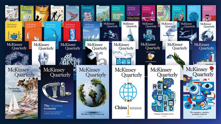 For nearly 60 years, McKinsey Quarterly—our flagship print publication—has provided unrivaled management and leadership insights. In January, we launched a digital edition to reach a wider audience while reducing our collective carbon footprint. The new format showcases a sleek design, dynamic table of contents, one-click overview, author profiles, bonus features, and in-depth reports from the McKinsey Insights Store. Much like this collage of past magazine covers, the digital edition transports readers across the decades and provides a new way for them to engage with a timeless classic.