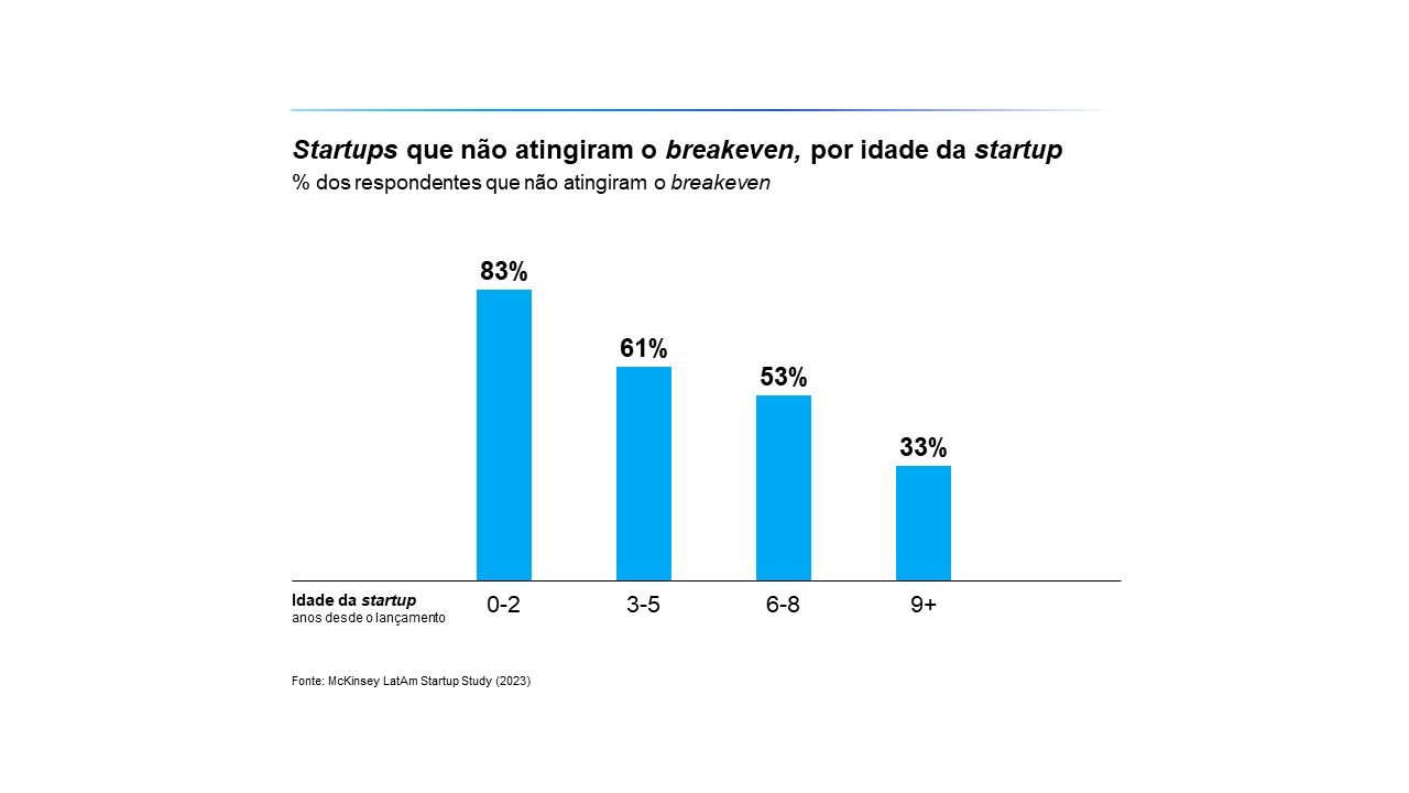 Se o caminho de crescimento é acelerado, a jornada para a lucratividade é um pouco mais árdua. Três em cada dez startups ainda rodam no vermelho, sem lucro, mesmo quase uma década após seu lançamento.