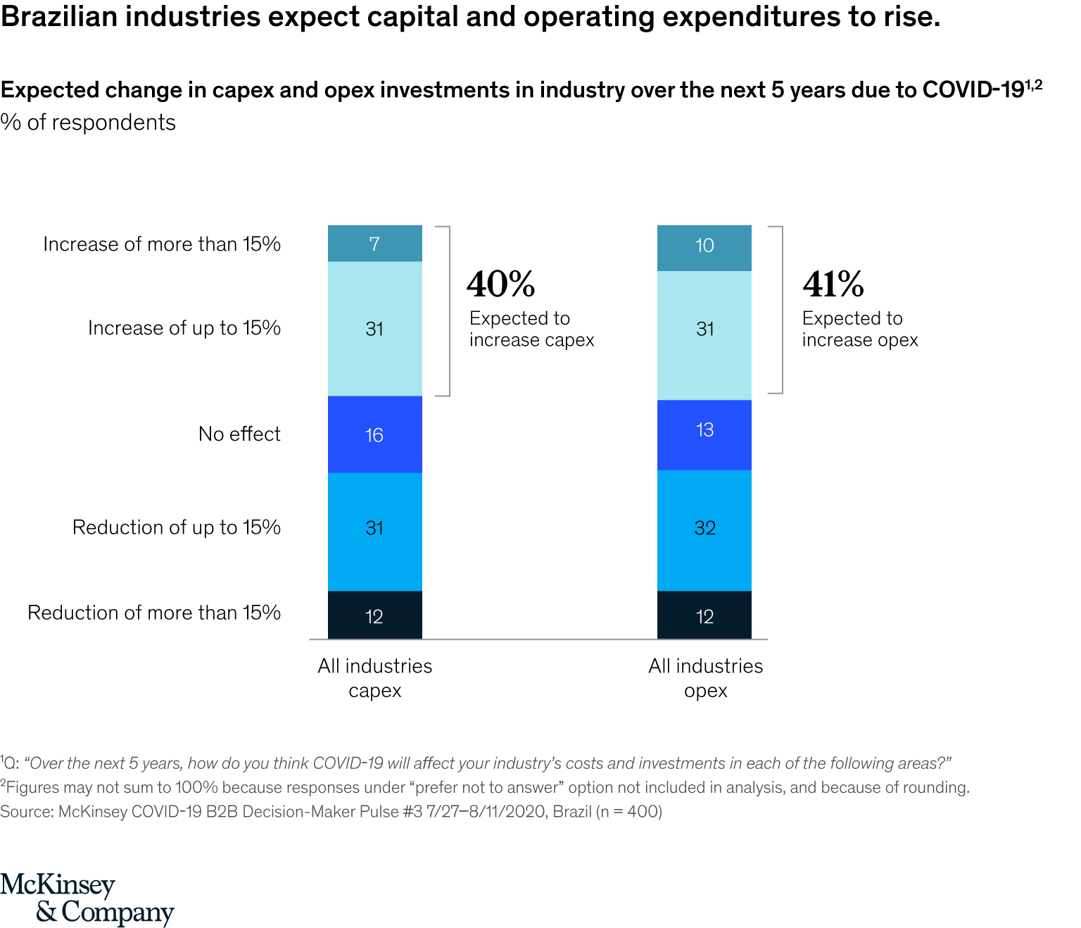 Apesar disso, uma parte expressiva dos tomadores de decisão continua a ter uma percepção positiva da situação. Seu otimismo se reflete no número de tomadores de decisão B2B que esperam ver um aumento nas despesas operacionais e nos gastos de capital nos próximos cinco anos.